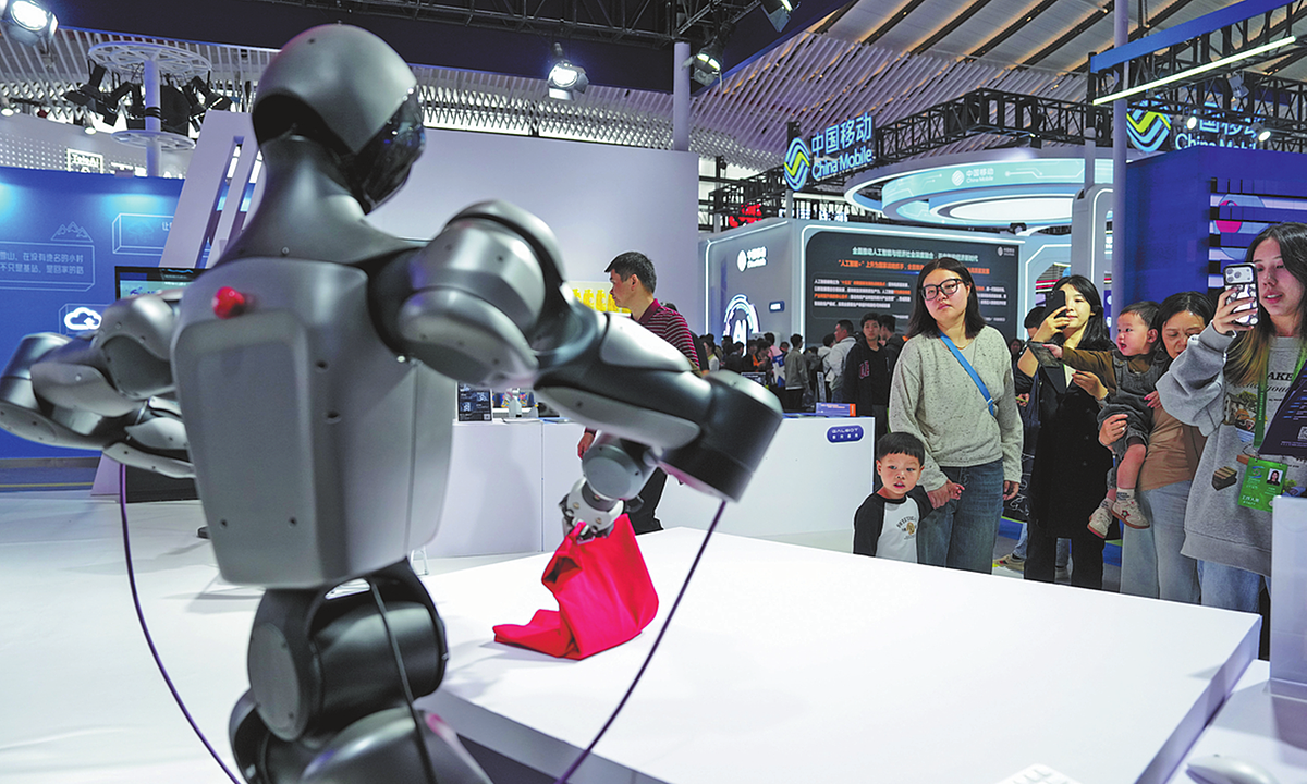 Robot hình người đang gấp khăn tại một sự kiện công nghệ ở Bắc Kinh. Ảnh: China Daily