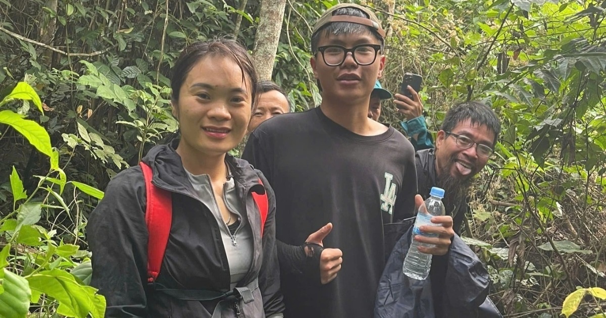Sinh viên Nguyễn Tuấn Anh (đội mũ) được tìm thấy sau hơn 36 giờ thất lạc khi leo núi Tam Đảo, xã Đạo Trù, tỉnh Phú Thọ (Ảnh: NVCC).
