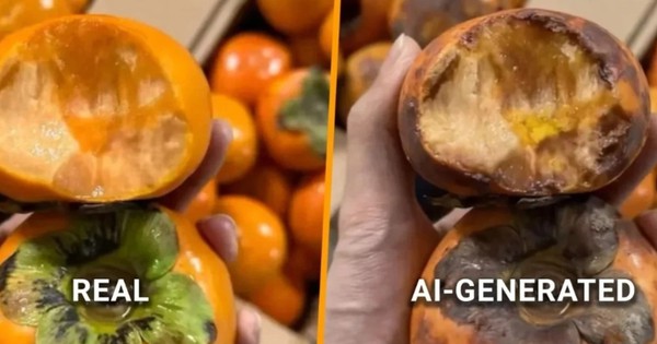 Hình ảnh thật của quả hồng và ảnh AI tạo – Ảnh: SCMP
