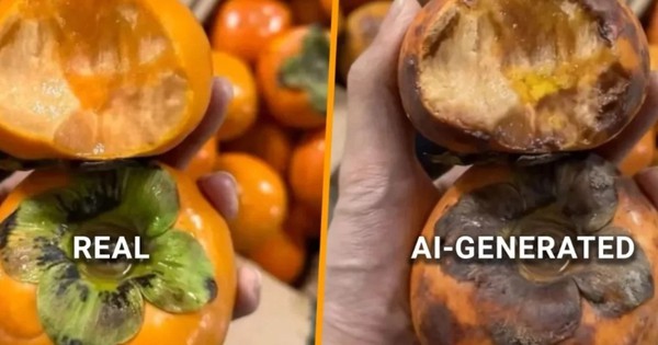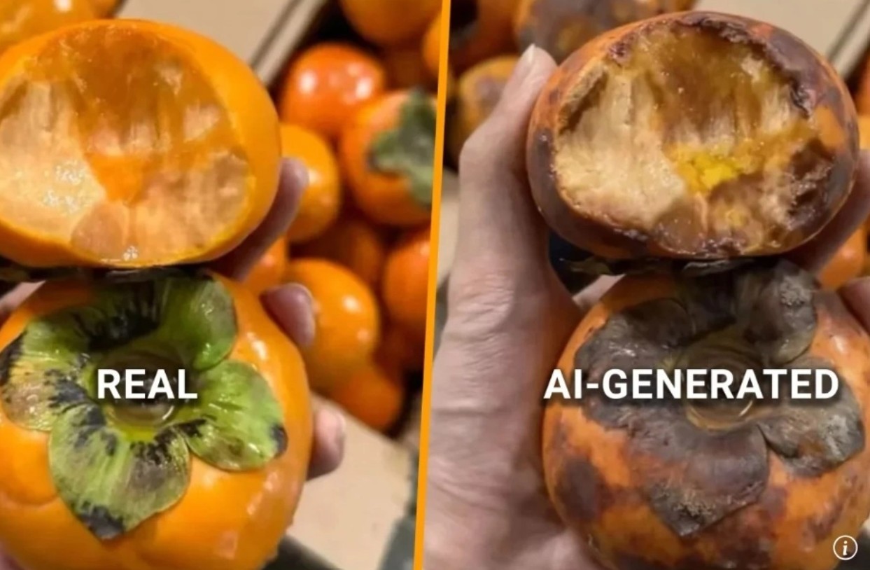 Hình ảnh thật của quả hồng và ảnh AI tạo – Ảnh: SCMP