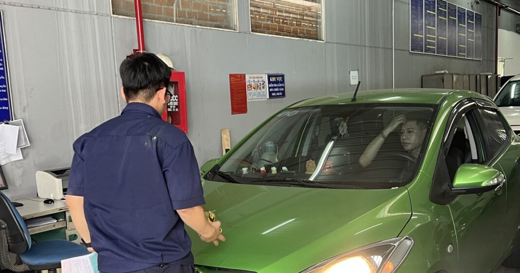 Một chủ xe đang thực hiện kiểm định xe. Ảnh: TN