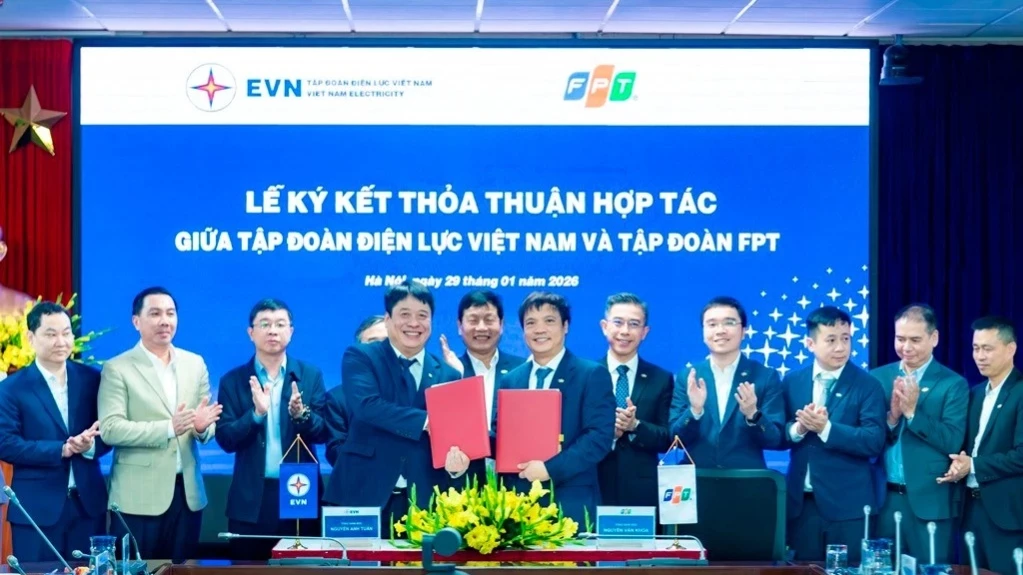 Ngày 29/1, Tập đoàn Điện lực Việt Nam (EVN) và Tập đoàn FPT chính thức ký kết thỏa thuận hợp tác chiến lược, hướng tới thúc đẩy toàn diện chuyển đổi số, chuyển đổi xanh và Chuyển đổi AI trong lĩnh vực điện lực, góp phần hiện thực hóa các mục tiêu của Nghị quyết số 57-NQ/TW về phát triển khoa học, công nghệ, đổi mới sáng tạo và chuyển đổi số quốc gia.