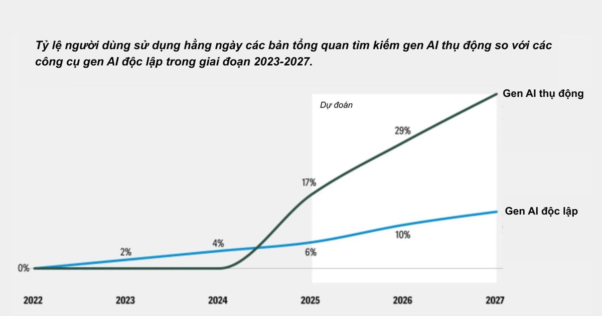 Deloitte dự đoán rằng đến năm 2026, việc sử dụng Trí tuệ nhân tạo tạo sinh (Gen AI) được tích hợp trực tiếp vào các nền tảng sẵn có, đặc biệt là công cụ tìm kiếm, sẽ vượt xa việc dùng các công cụ Gen AI độc lập.