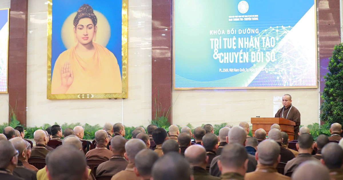GNO – Ban Thông tin – Truyền thông GHPGVN TP.HCM, sáng nay, 9-1-2026, tại Việt Nam Quốc Tự (P.Hòa Hưng, TP.HCM), đã khai mạc Khóa bồi dưỡng về Trí tuệ nhân tạo (AI) và chuyển đổi số, với 722 học viên là Tăng Ni và cư sĩ trong và ngoài TP.HCM dự học.