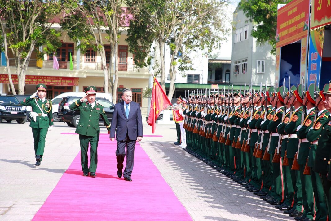 Tổng Bí thư Tô Lâm duyệt đội danh dự tại Lễ Kỷ niệm.