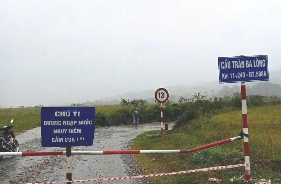 Các tuyến ĐT.571, ĐT.587, QL9 có điểm ngập 10–30cm; chính quyền địa phương đã cắm biển cảnh báo, huy động lực lượng ứng trực 24/24 giờ.