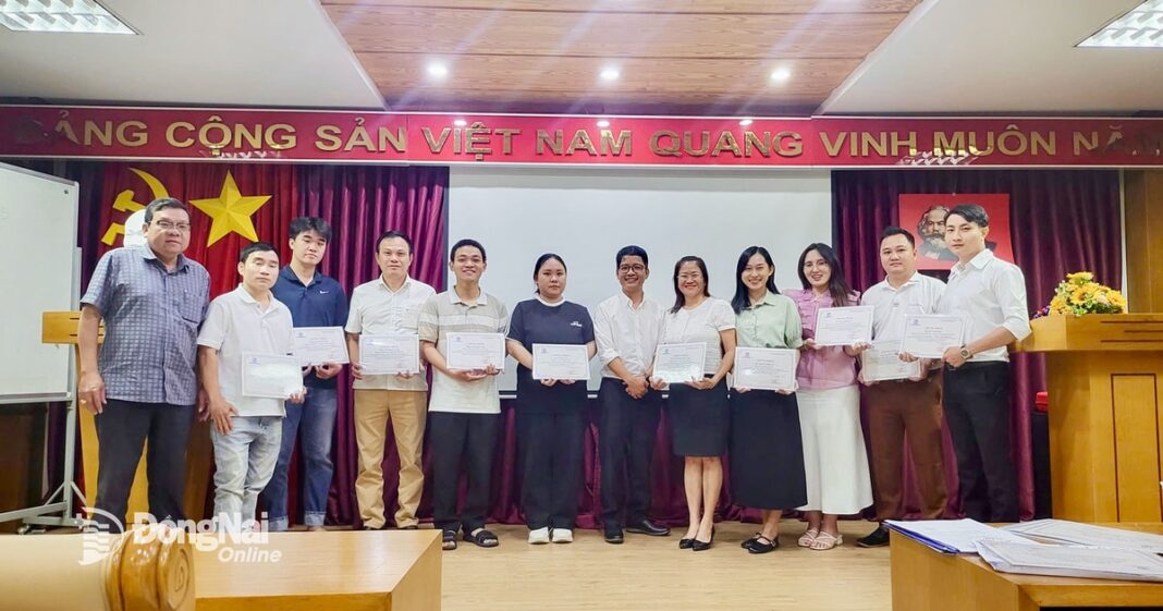 Các phóng viên, biên tập viên được trao chứng nhận hoàn thành lớp tập huấn. (Ảnh: Báo Đồng Nai)