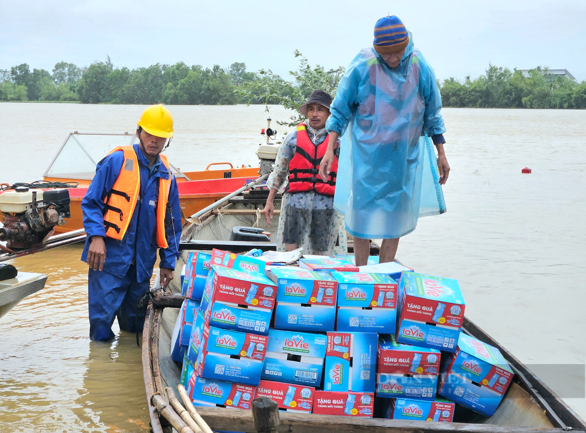 Chính quyền địa phương tại các vùng lũ vận chuyển nước sạch vào tiếp tế cho người dân. Ảnh: Trần Anh