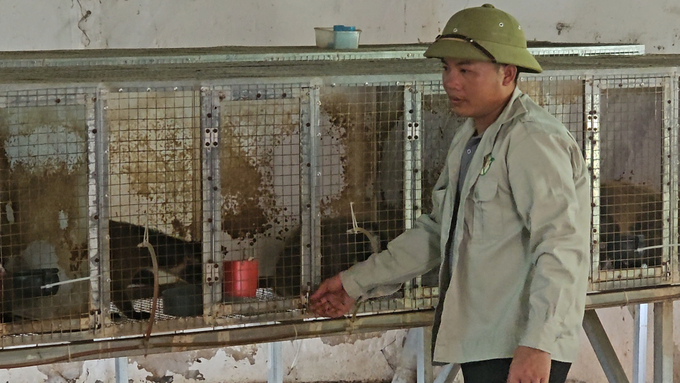 Cán bộ kiểm lâm địa bàn huyện Bố Trạch kiểm tra cơ sở nuôi chồn mốc tại xã Sơn Lộc. Ảnh: T. Đức.