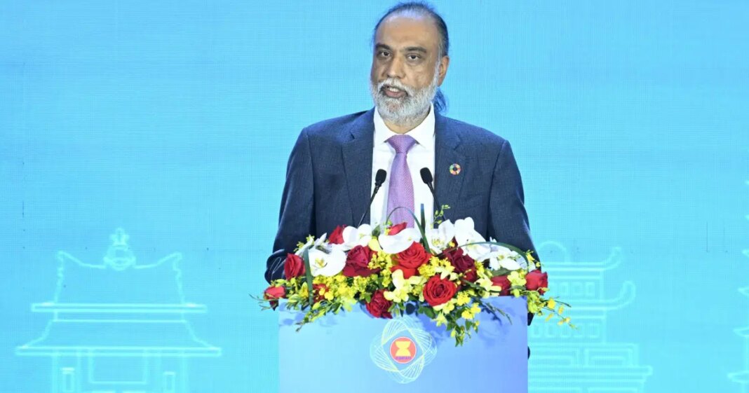 Phó Tổng thư ký Liên hợp quốc kiêm Đặc phái viên của Tổng thư ký Liên hợp quốc về công nghệ Amandeep Singh Gill phát biểu tại Hội nghị Bộ trưởng số ASEAN lần thứ 6. Ảnh: TRẦN HẢI