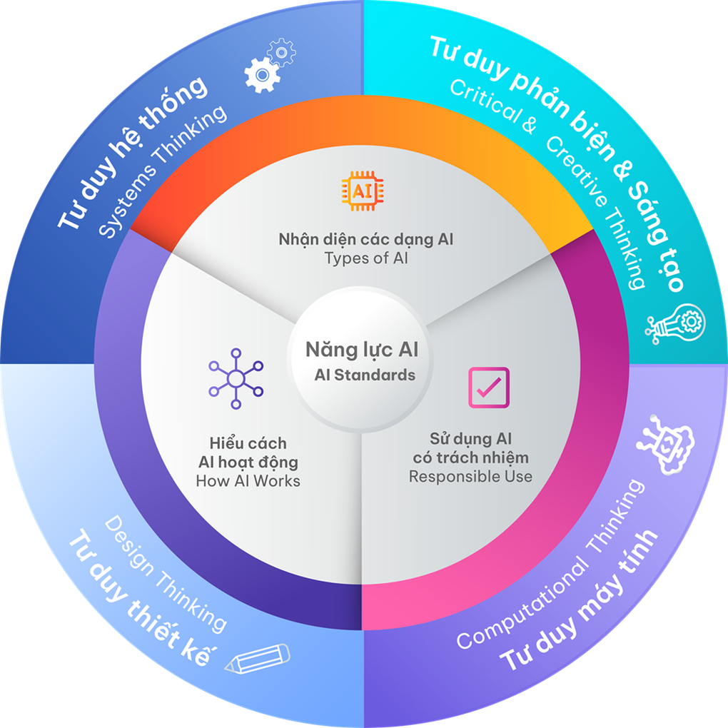 Mô hình 3 mạch năng lực và 4 mạch kỹ năng chính của khung năng lực AI tại Vinschool.